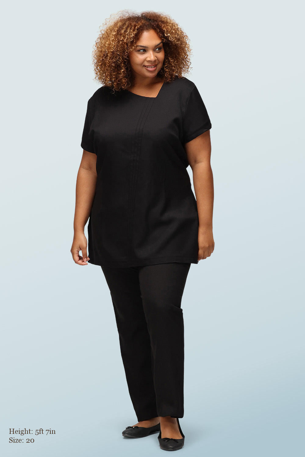 This contemporary beauty and wellness tunic is designed with an asymmetrical neckline for style and sophistication, featuring front seam detailing to flatter every body. Because you deserve to feel fabulous all shift long.