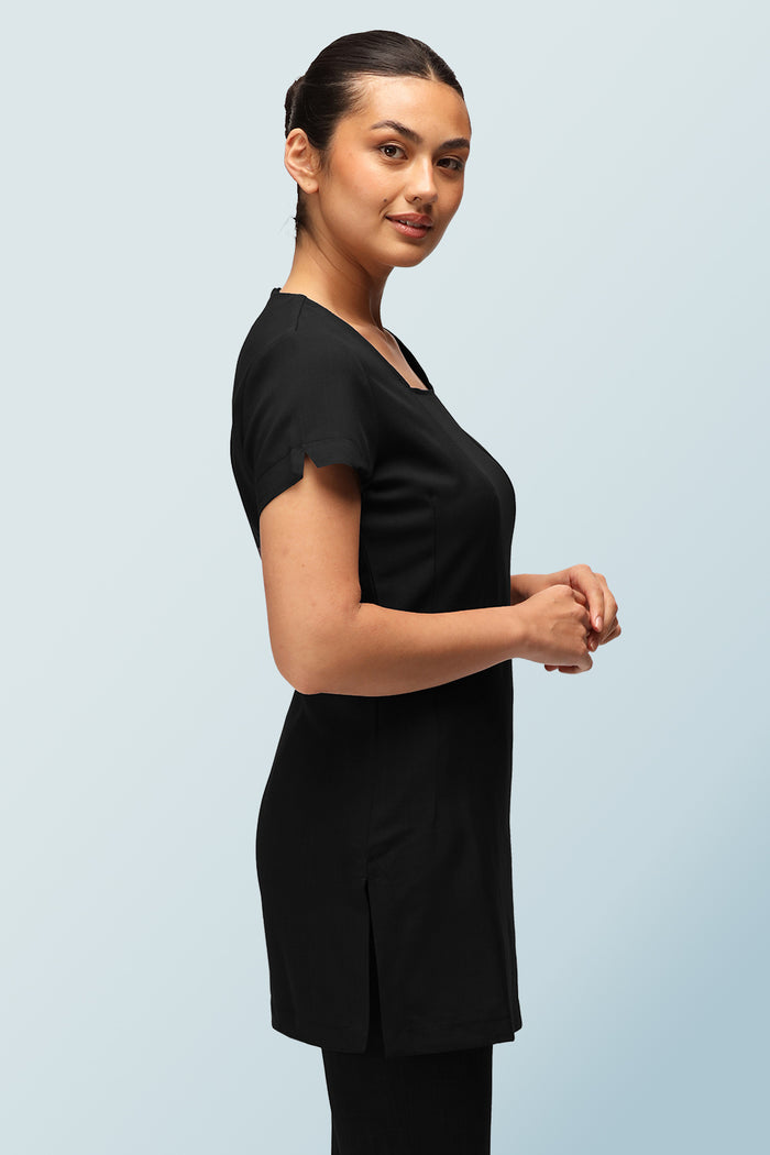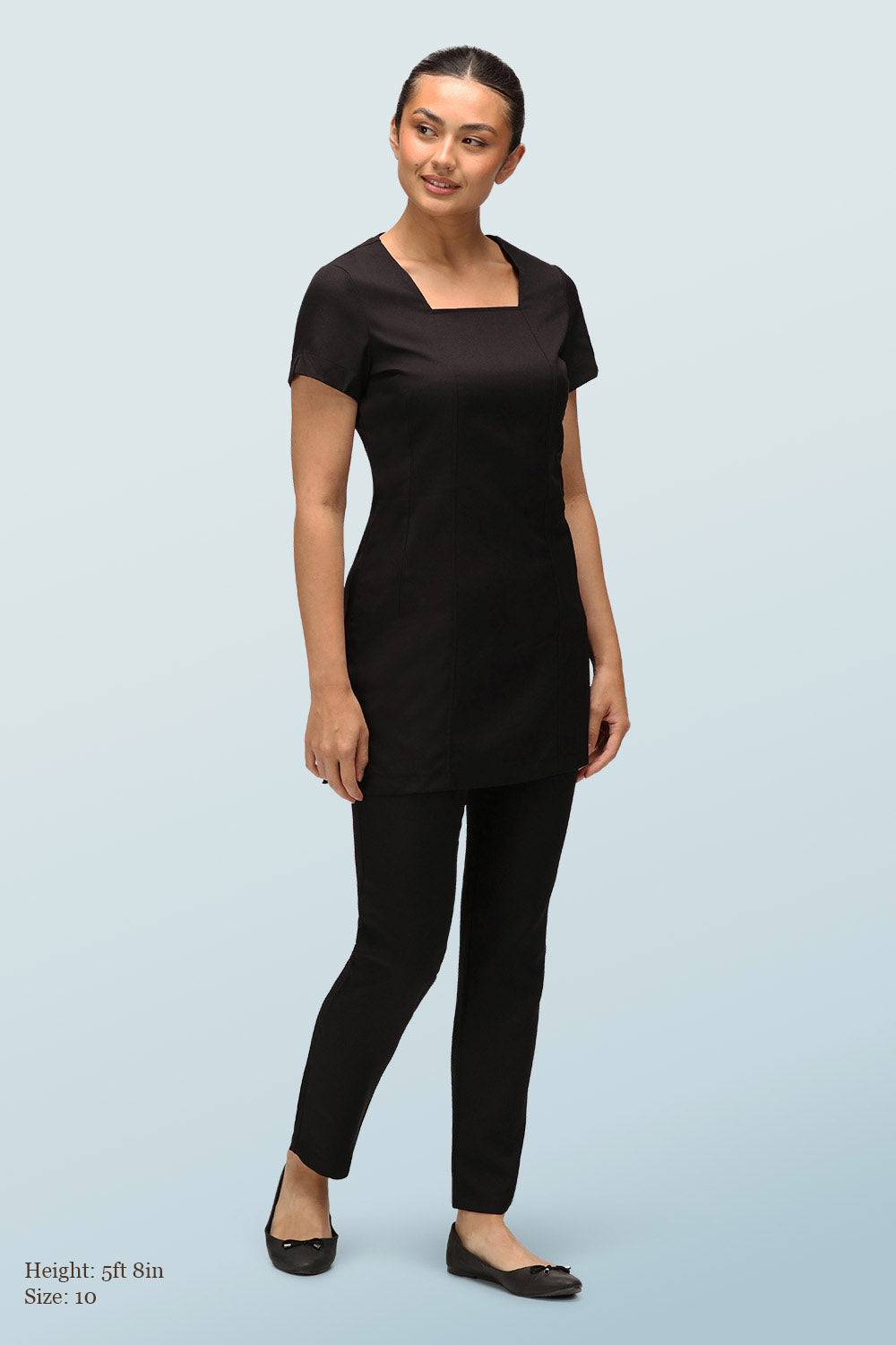 This elegant beauty and wellness tunic is designed with a flattering square cut neck while still appearing modest and professional. Because you deserve to feel your best, all shift long.