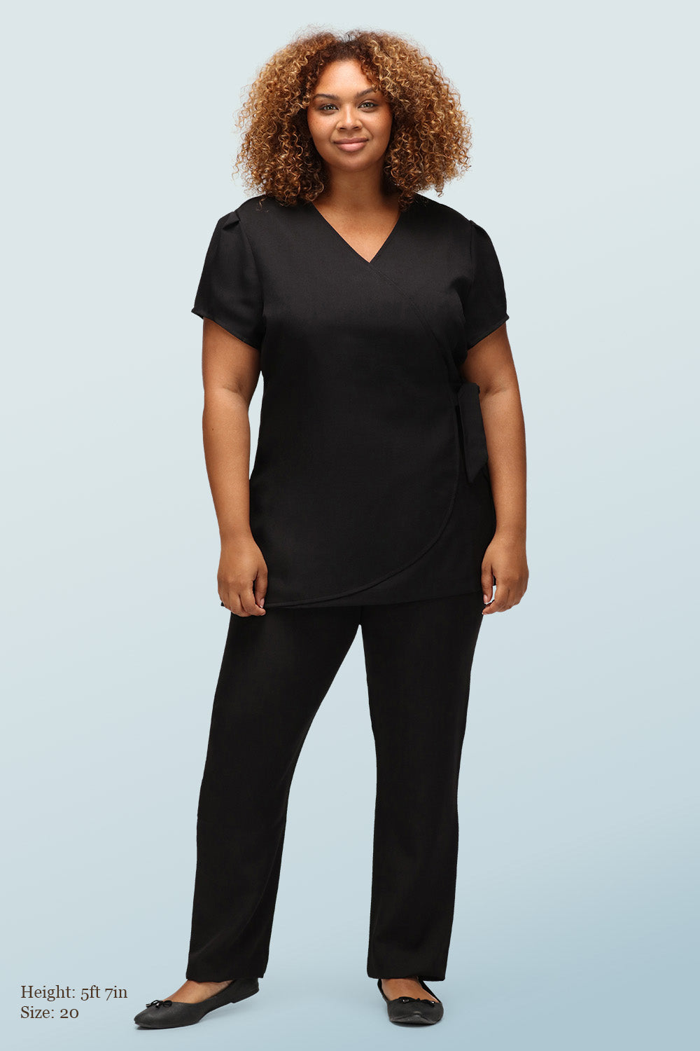 This best-selling wellness and beauty tunic features a faux crossover for practicality and to keep you feeling secure. Its side tie can be fastened in a bow or a knot. Because you deserve to feel your best, all shift long.