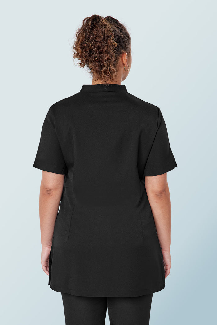 This unique wellness and beauty tunic is designed with a stylish mandarin collar, featuring a flattering asymmetrical crossover design and a hidden front zip closure. Because confidence is all in the considered details.
