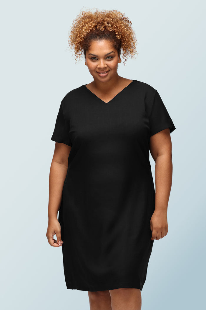 This sleek beauty and wellness dress is designed with two handy side pockets. Features a flattering yet modest v-neckline for professionalism and sophistication. Because you deserve to feel your best, all shift long.