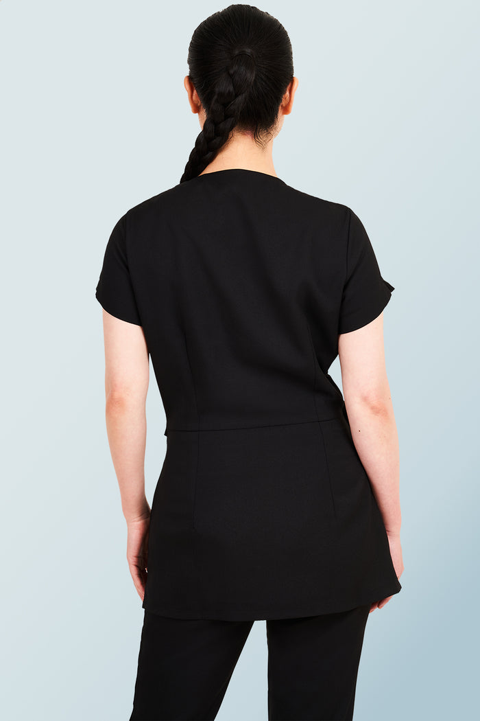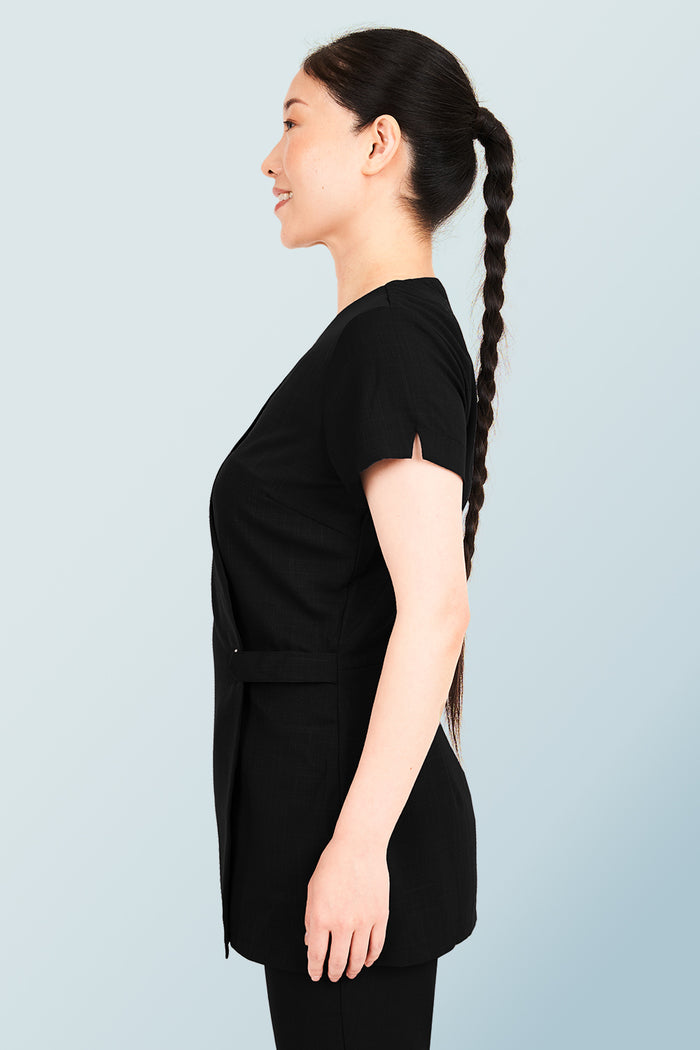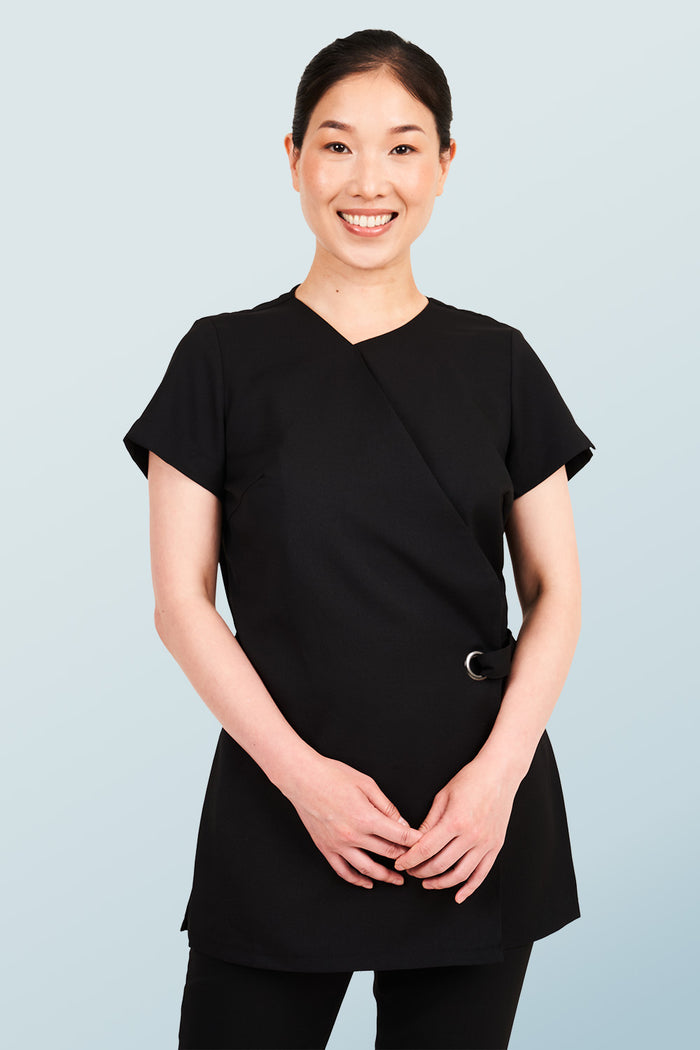 This modern beauty and wellness tunic is designed with an adjustable wrap over and side fastening for a flattering fit that brings you comfort and confidence. Because you deserve to feel your best, day in, day out.