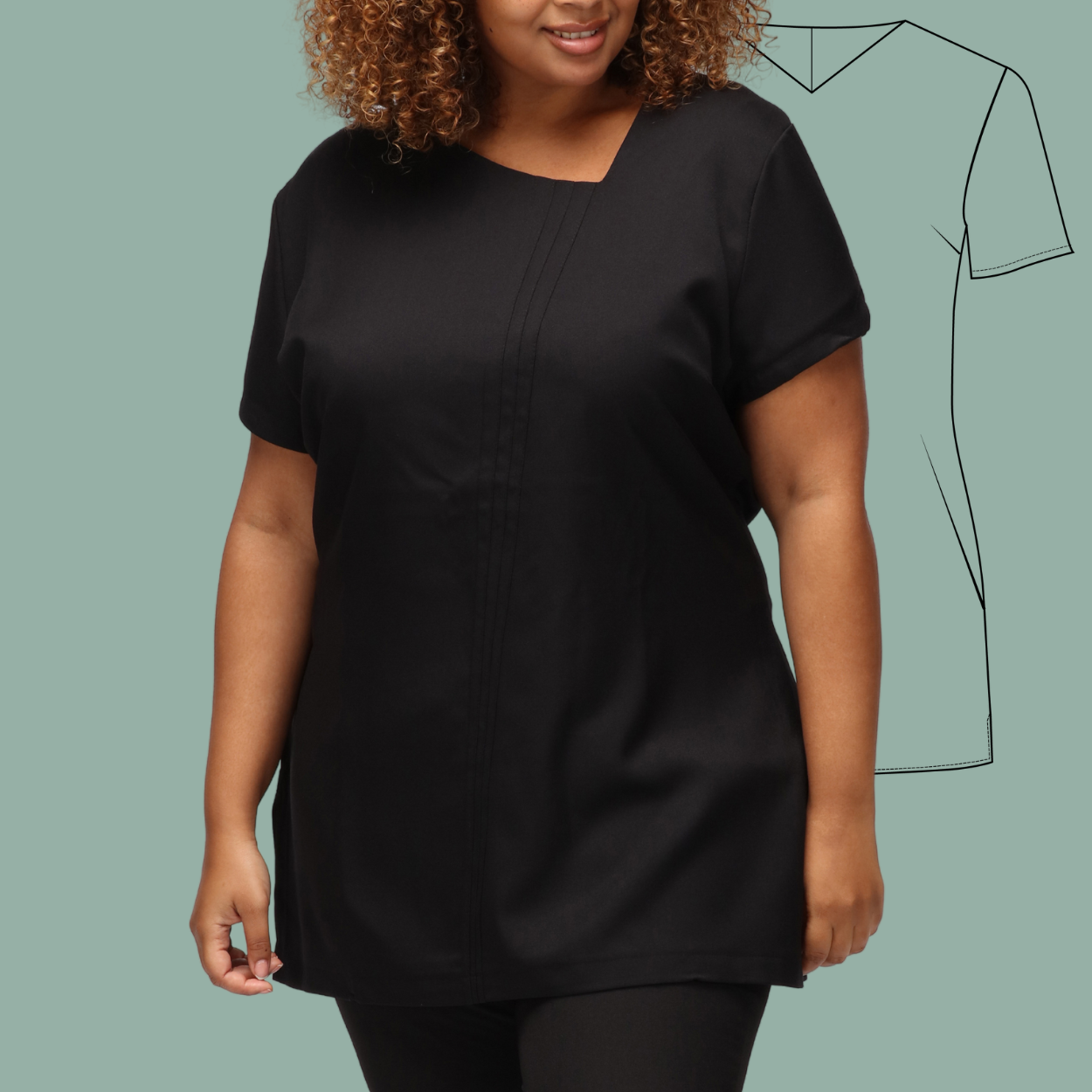 Longer Length TunicThis flattering wellness and beauty tunic is designed with a longer length for modesty and confidence. Pair easily with trousers or leggings. Features three faux crystal buttons for a touch of sparkle and style. Short sleeves designed for ease of movement Back fastening zip...- £47.95