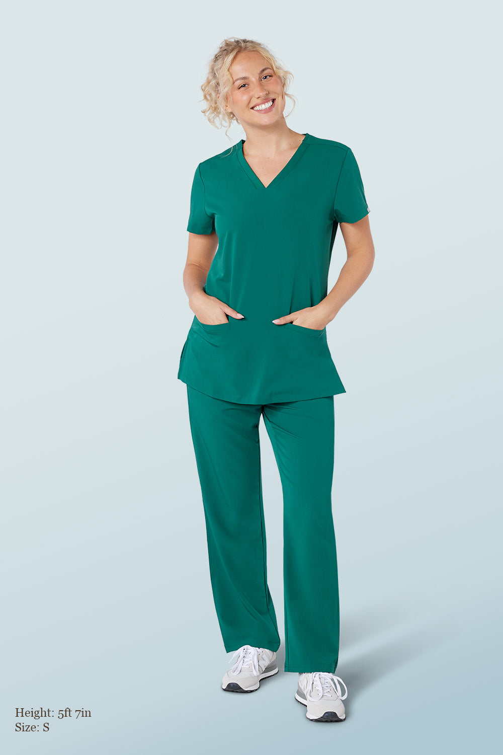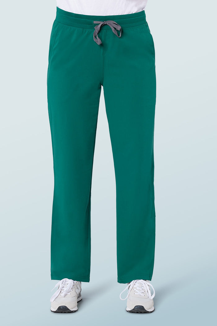 Looks like scrub trousers, feels like activewear. This 'just right' semi-fitted silhouette features a super comfortable athletic stretch waistband with an adjustable outer drawcord and 3 functional pockets. 75% Poly, 19% Viscose, 6% Spandex, 100% game-changing.