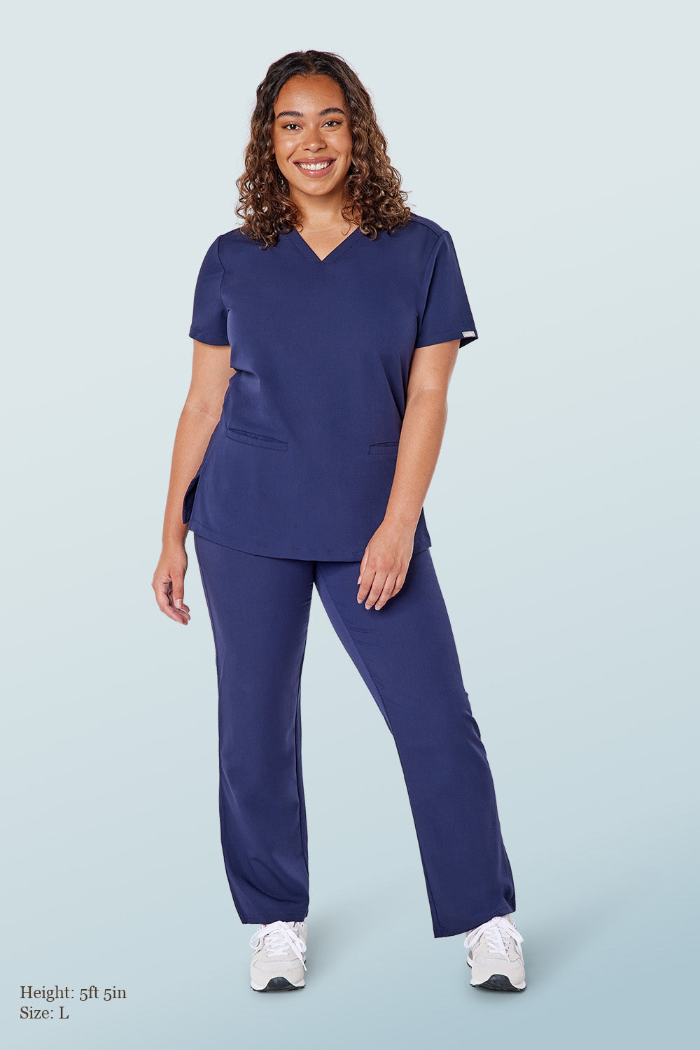 Looks like scrub trousers, feels like activewear. This 'just right' semi-fitted silhouette features a super comfortable athletic stretch waistband with an adjustable outer drawcord and 3 functional pockets. 75% Poly, 19% Viscose, 6% Spandex, 100% game-changing.
