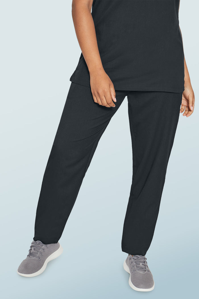 Looks like scrub trousers, feels like activewear. This 'just right' semi-fitted silhouette features a super comfortable athletic stretch waistband with an adjustable outer drawcord and 3 functional pockets. 81% Poly, 15% Viscose, 4% Spandex, 100% game-changing.