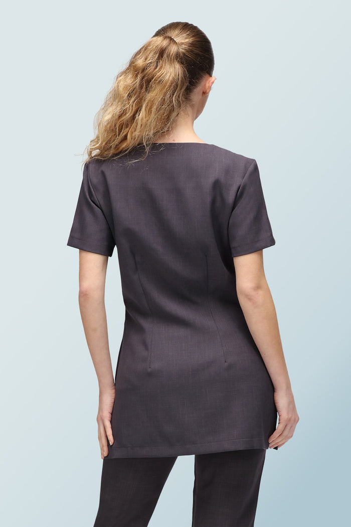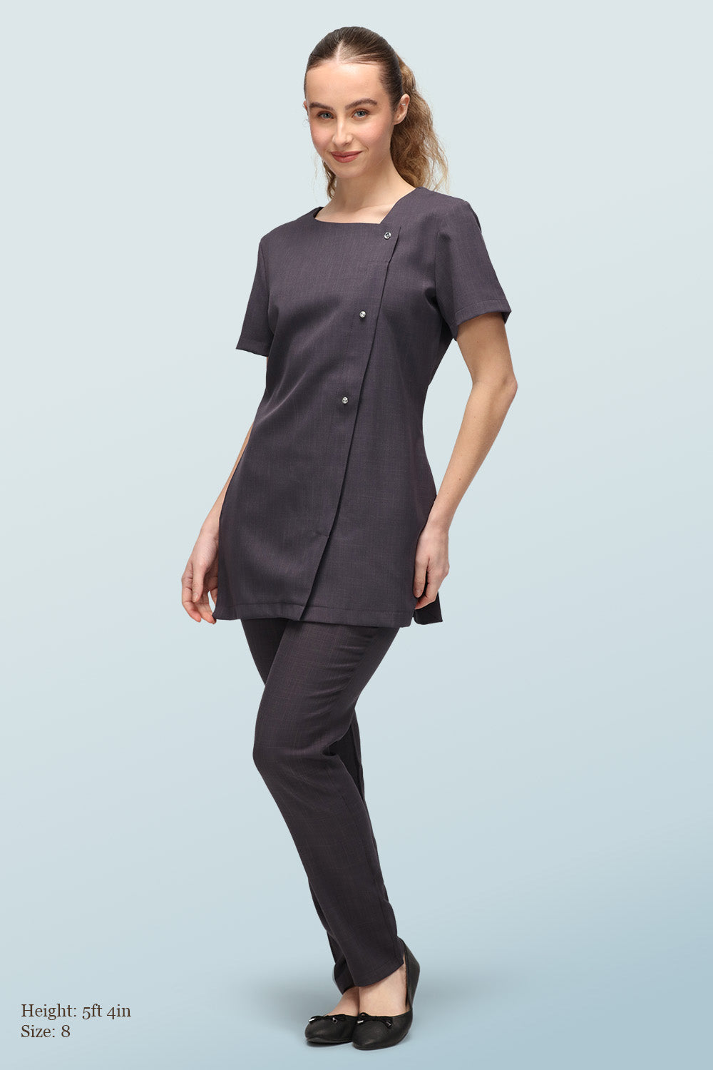 This classic wellness and beauty tunic is designed with an elegant asymmetrical neckline, along with faux crystal buttons to add a touch of sparkle and style. Because you deserve to feel fabulous all shift long.