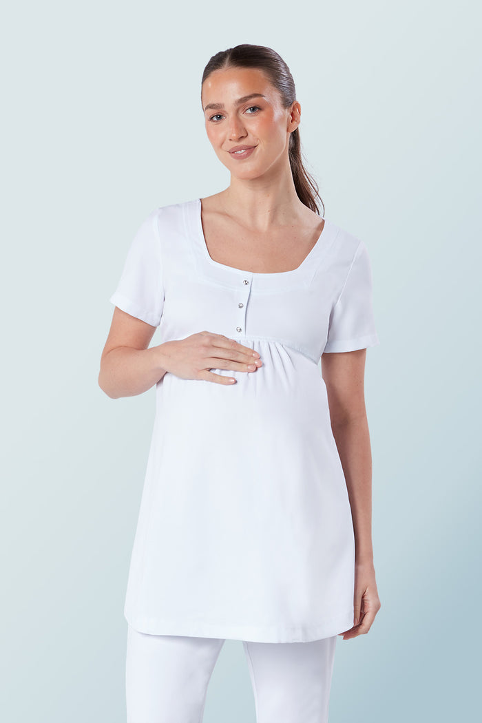 This ultimate maternity tunic is designed with a fully adjustable drawstring and back tie for the perfect fit throughout the whole pregnancy. Because all women deserve feel-good uniforms throughout every stage of life.