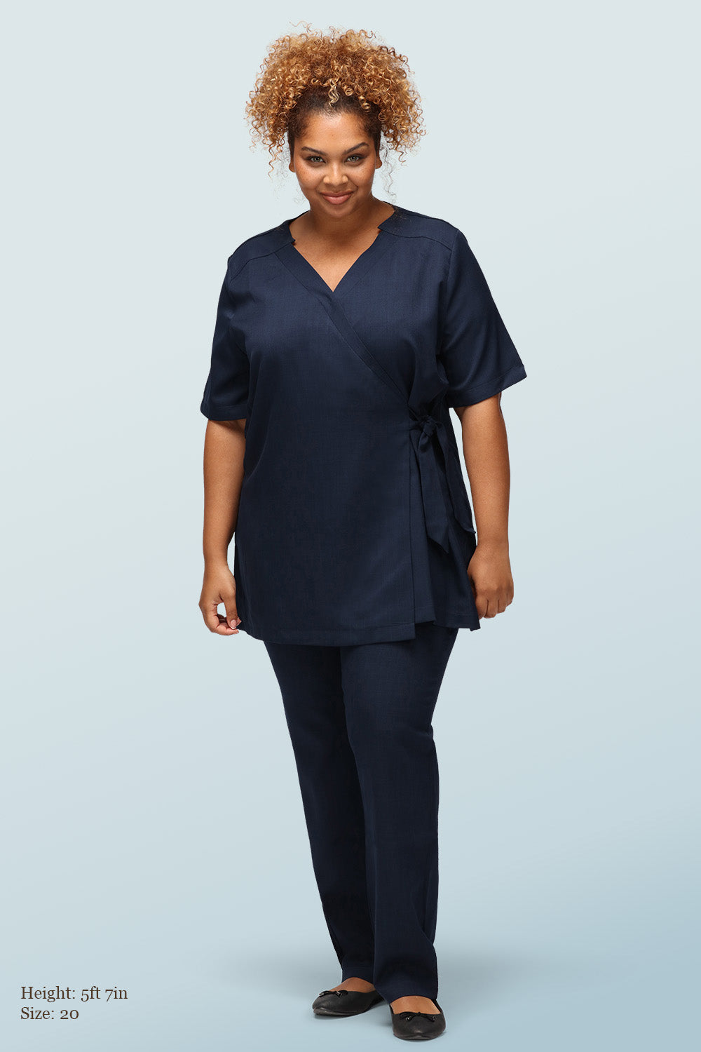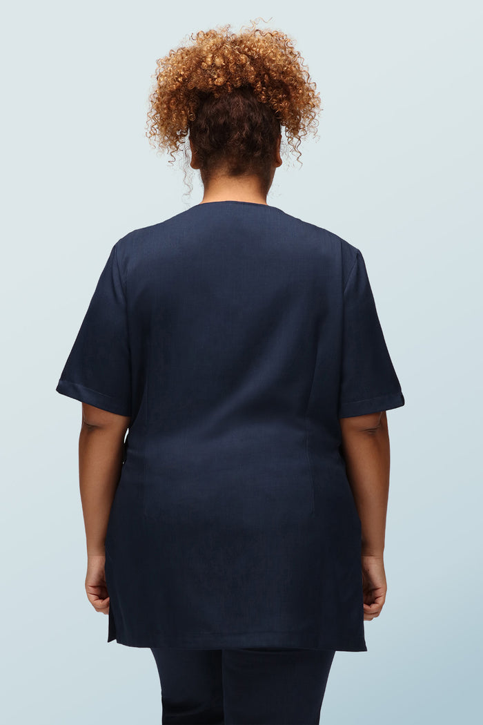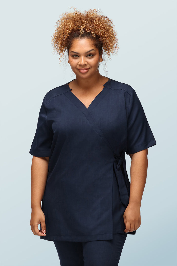 This functional wellness and beauty tunic features an adjustable wrap over design and side tie that can be fastened in a bow or a knot for the perfect fit. Bringing you all-day comfort and confidence.