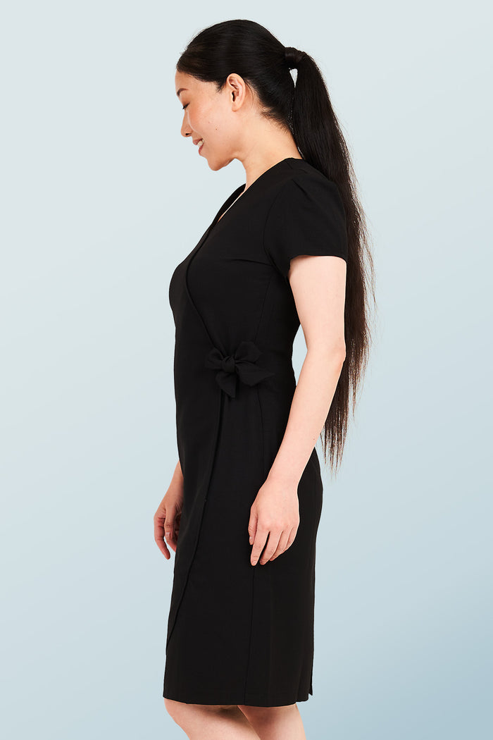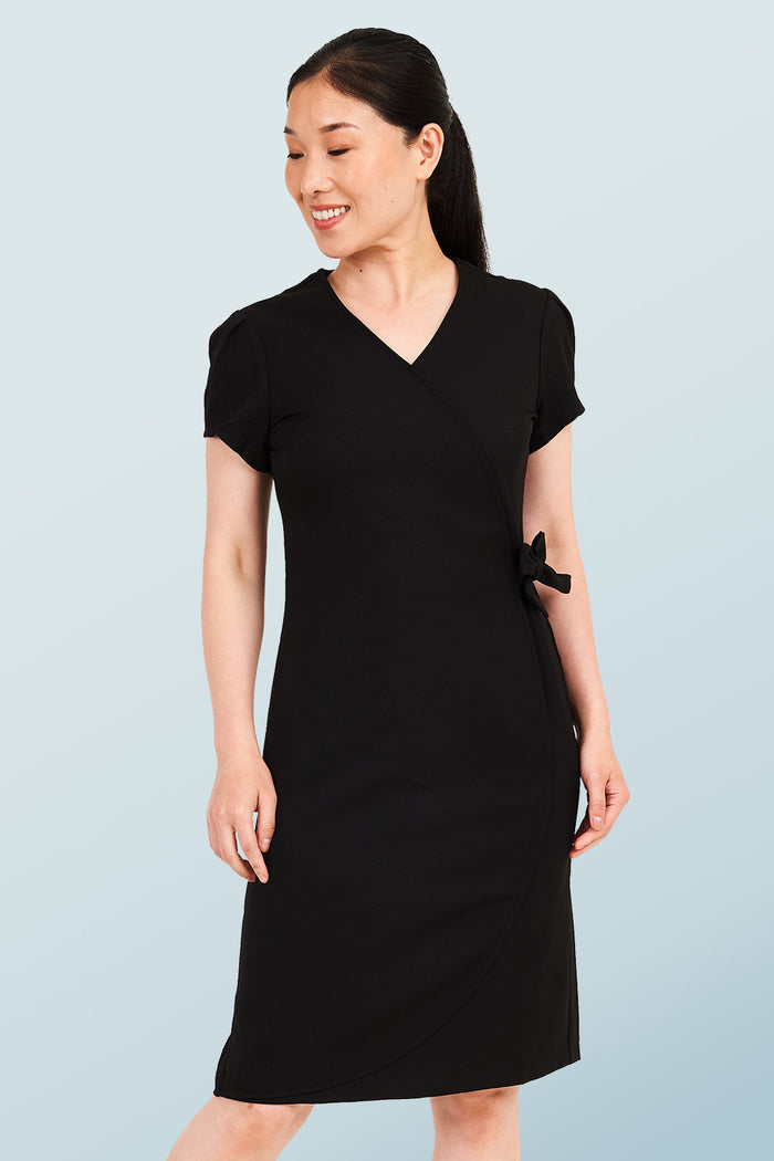 This best-selling wellness and beauty dress features an adjustable faux secure crossover for practicality. Its side tie can be secured in a bow or a knot for the perfect fit. The easiest, effortless feel-good uniform you need to take on the day.