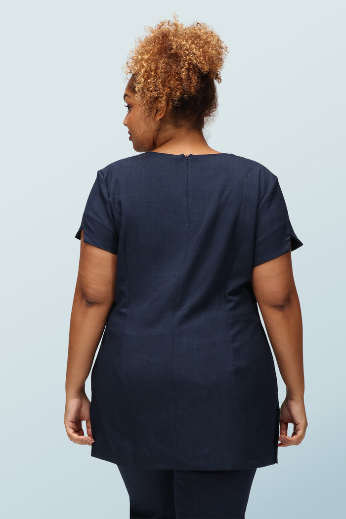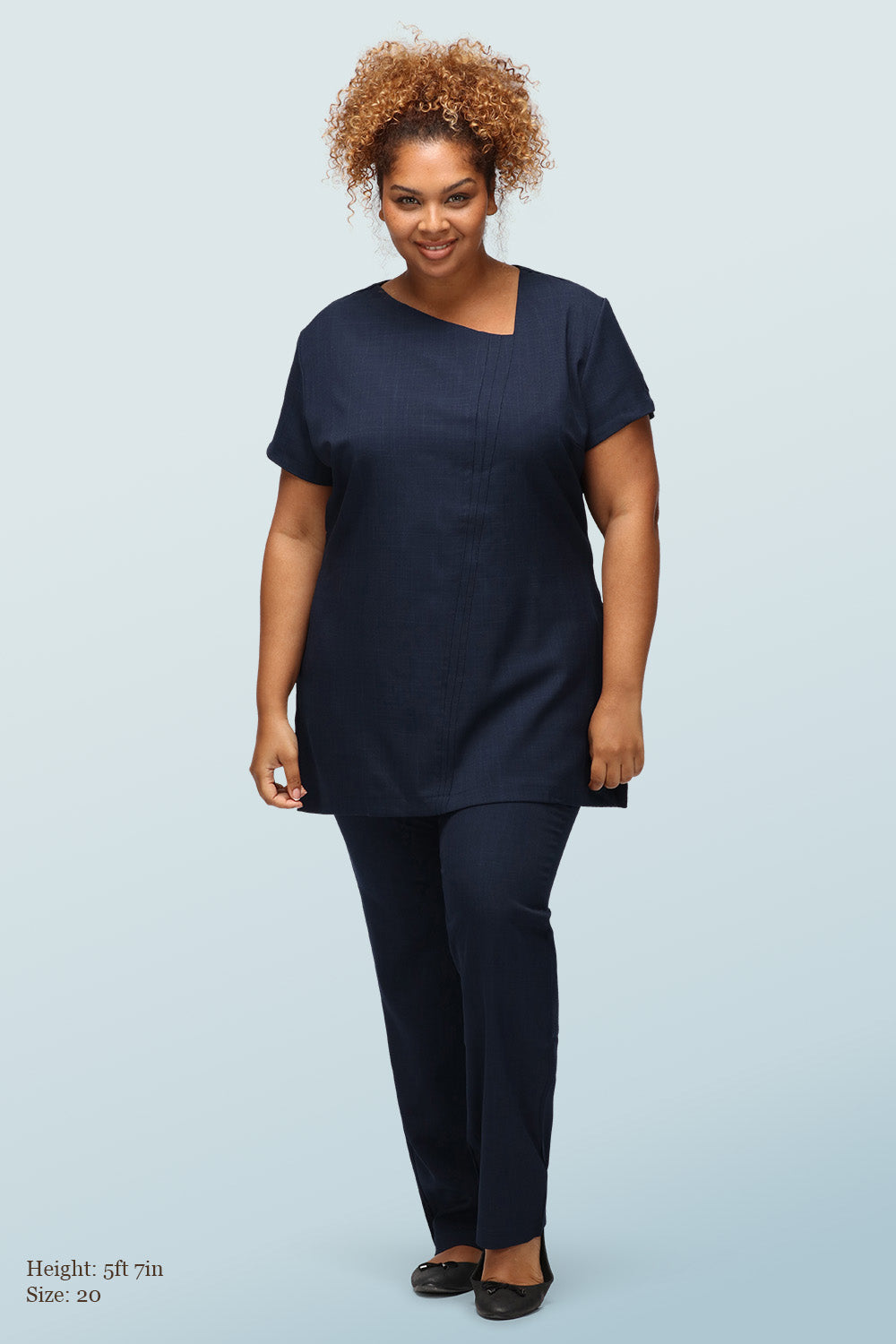 This contemporary beauty and wellness tunic is designed with an asymmetrical neckline for style and sophistication, featuring front seam detailing to flatter every body. Because you deserve to feel fabulous all shift long.