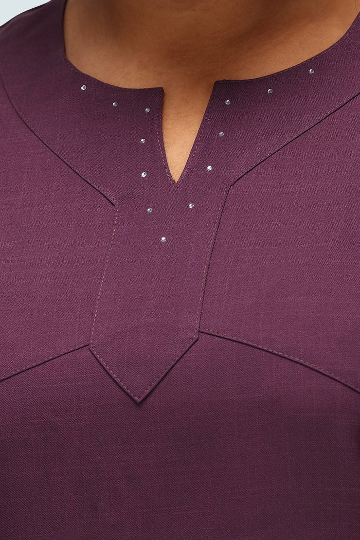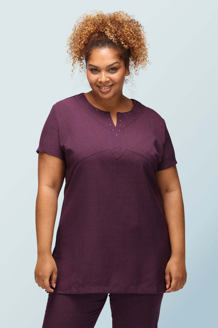 This embellished wellness and beauty tunic is designed with a unique notch neckline for sophistication and style, featuring subtle diamante detailing for a touch of sparkle. Because you deserve a uniform that shines like you do.