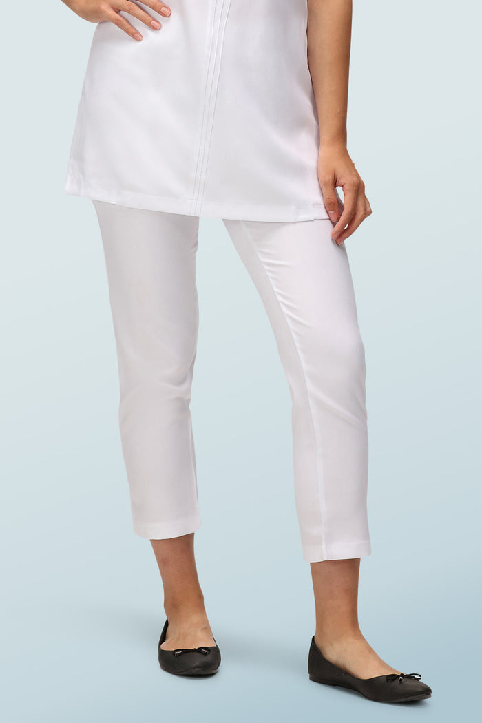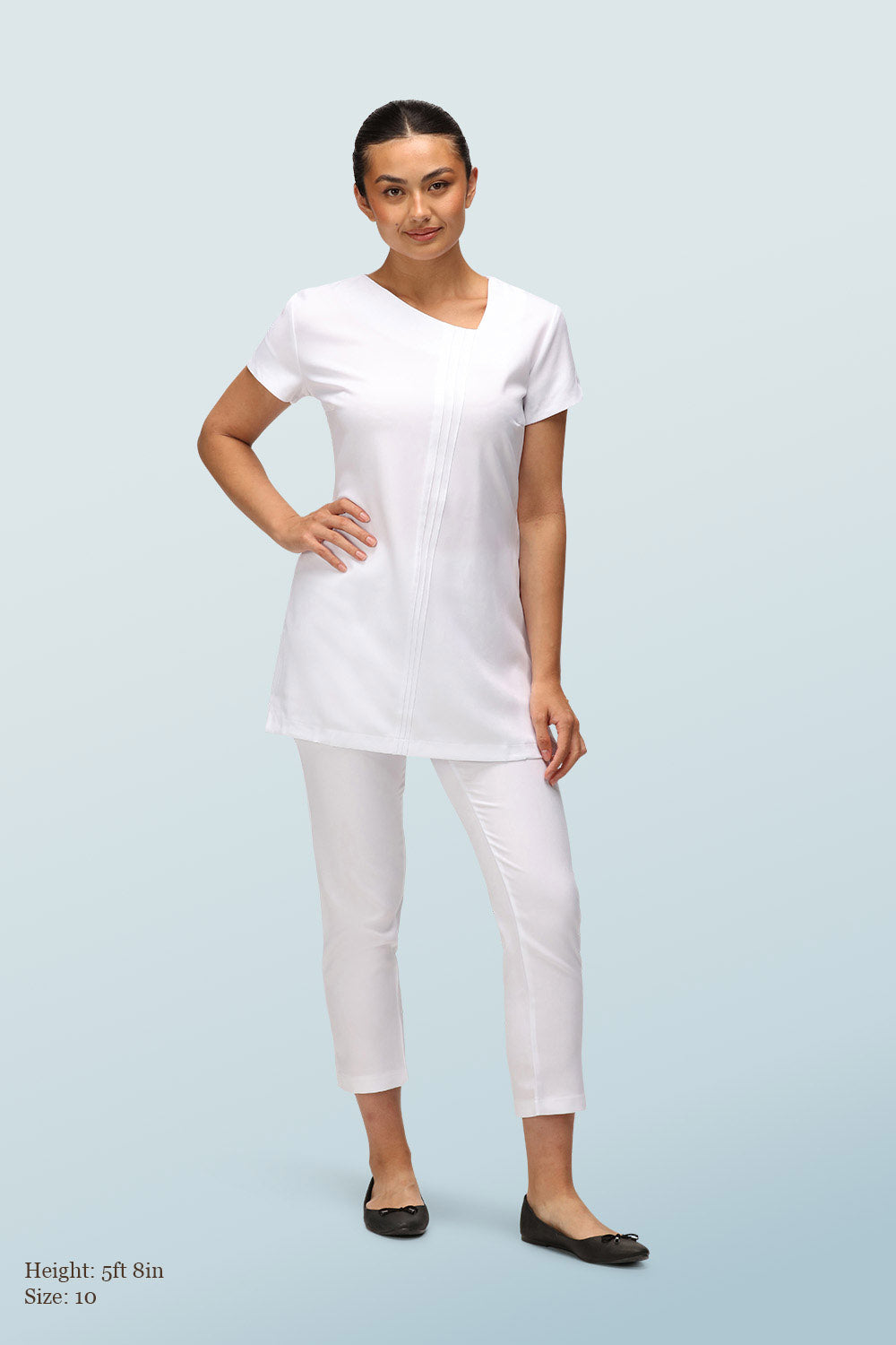 These modern beauty and wellness trousers have a cropped design for breathability and practicality, while the comfy slim leg offers a professional, sophisticated look. Because you deserve to feel fabulous all shift long.