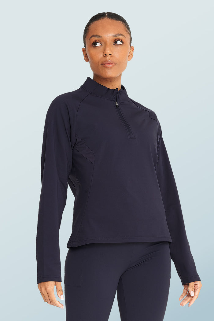 This super soft midlayer has a tailored fit for a highly sculptured effect and ultimate confidence. Made from moisture-wicking performance fabrics to support full-range body movement, with a ¼ zip collar and raglan sleeves for easy wear. Perfect for when you’re on the move. Produced from premium 77% recycled polyester, 23% elastane.