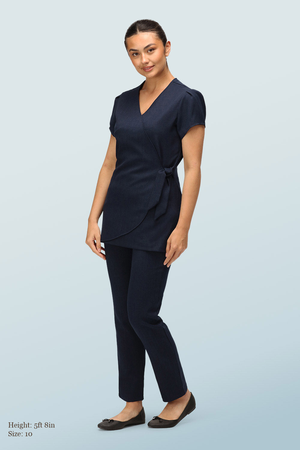 This best-selling wellness and beauty tunic features a faux crossover for practicality and to keep you feeling secure. Its side tie can be fastened in a bow or a knot. Because you deserve to feel your best, all shift long.