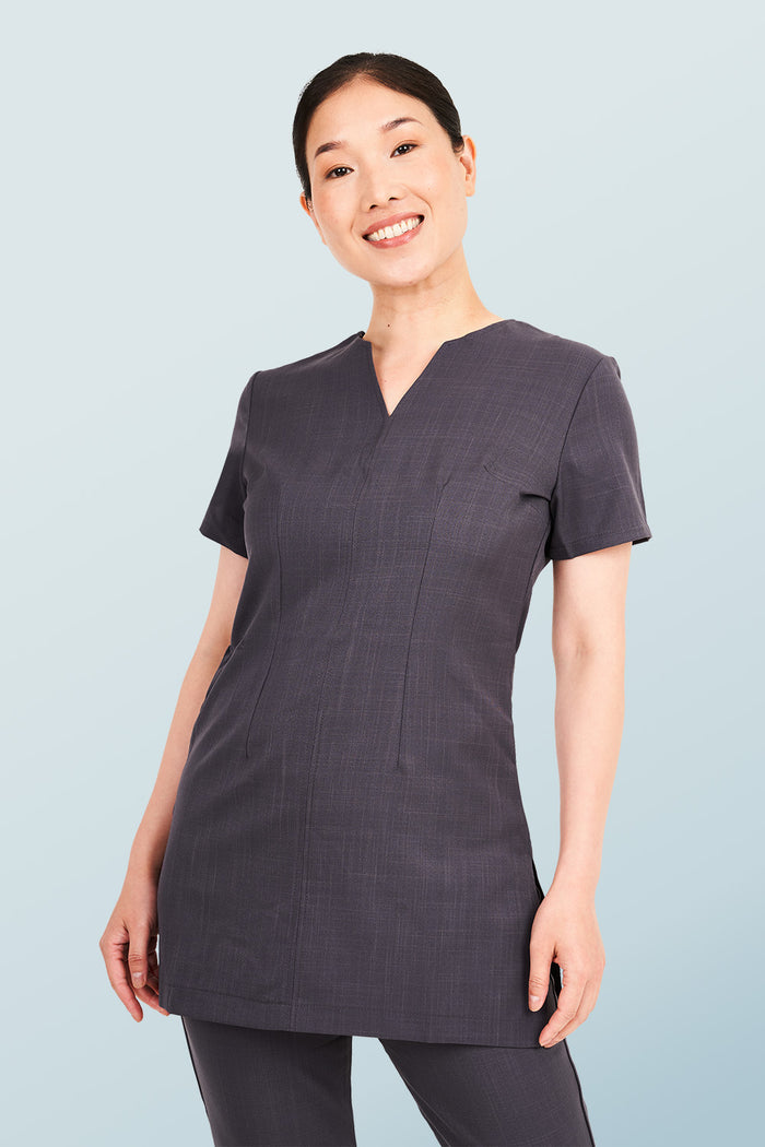 This classic wellness and beauty tunic is designed with a modest notch v-neckline that blends practicality, style and sophistication. Because you deserve a uniform that makes you feel as beautiful as you make your clients feel.