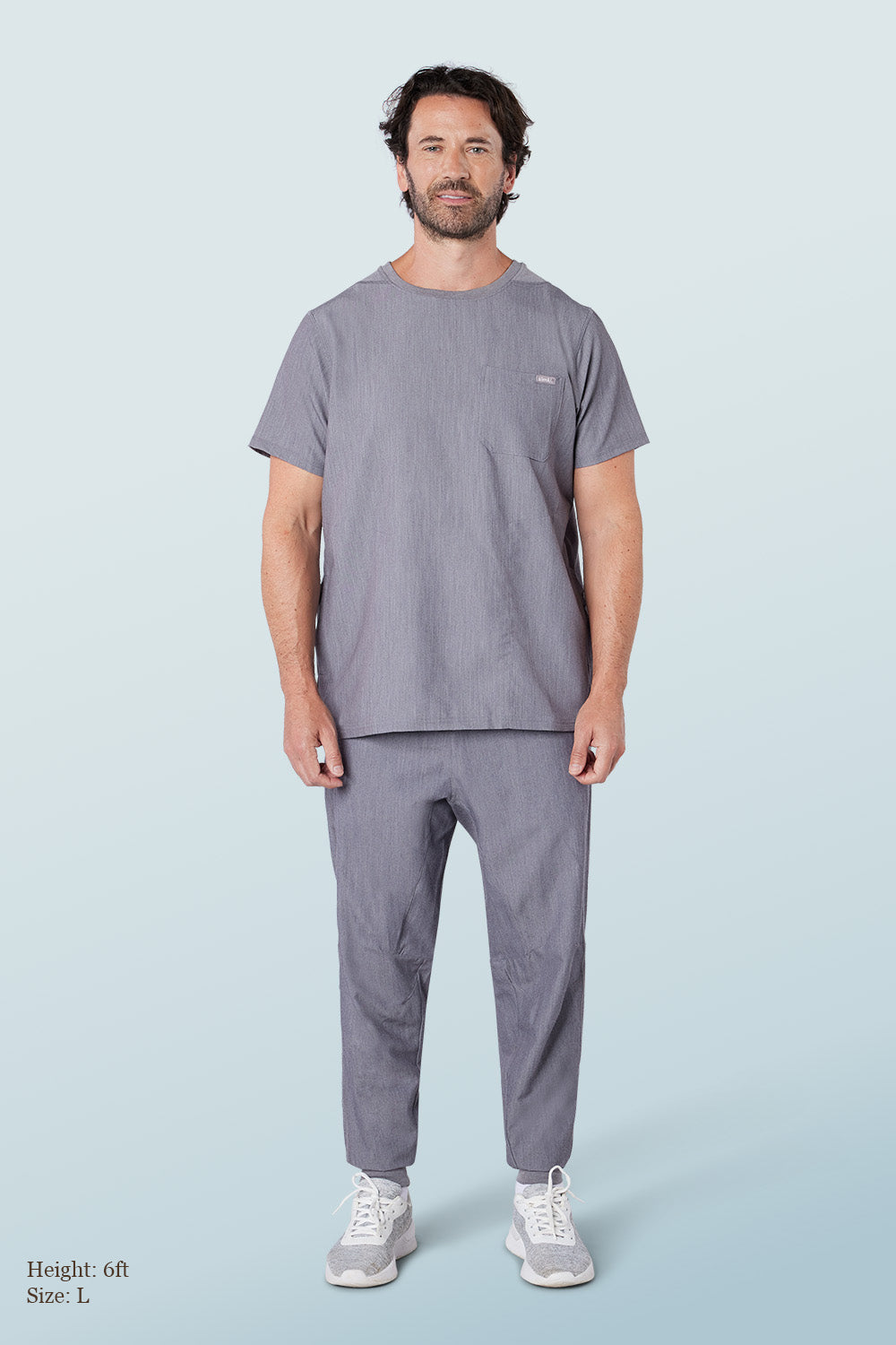 Everything you love about your favourite pair of joggers, transformed into comfortable everyday scrubs. This athletically inspired silhouette features three functional pockets, stretch ankle cuffs and are both moisture wicking and liquid repellent. 75% Poly, 19% Viscose, 6% Spandex, 100% game-changing.