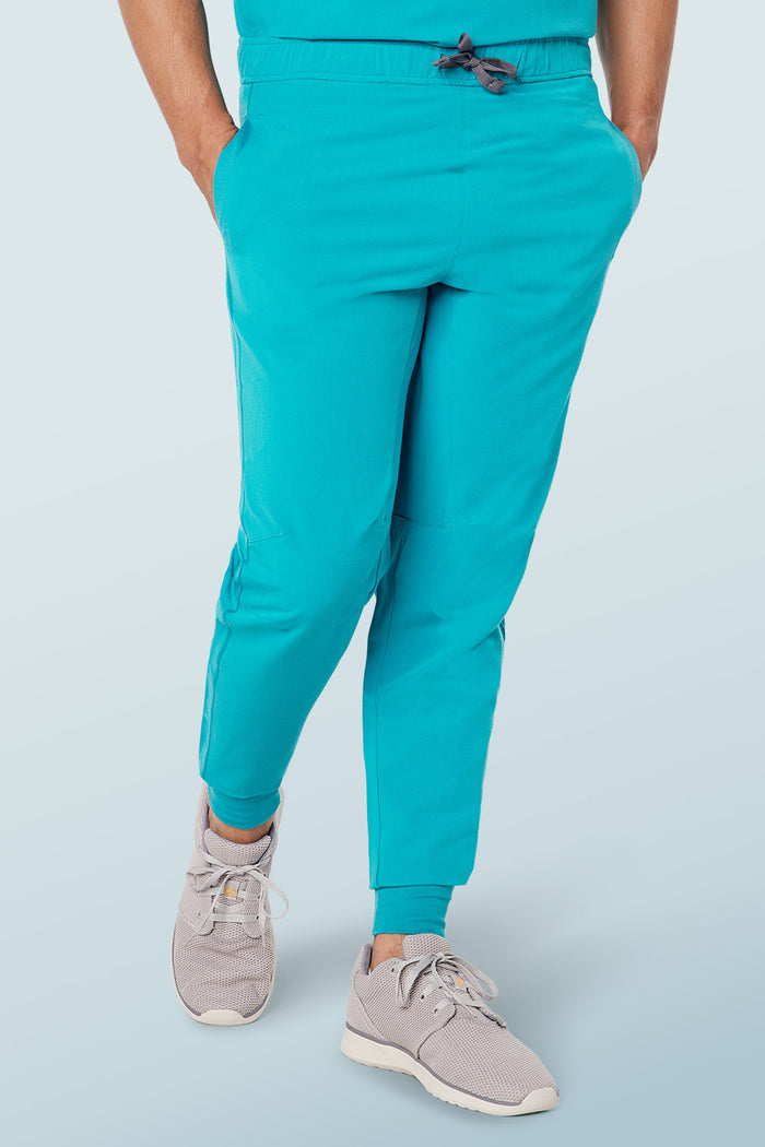 Everything you love about your favourite pair of joggers, transformed into comfortable everyday scrubs. This athletically inspired silhouette features three functional pockets, stretch ankle cuffs and are both moisture wicking and liquid repellent. 81% Poly, 15% Viscose, 4% Spandex, 100% game-changing.
