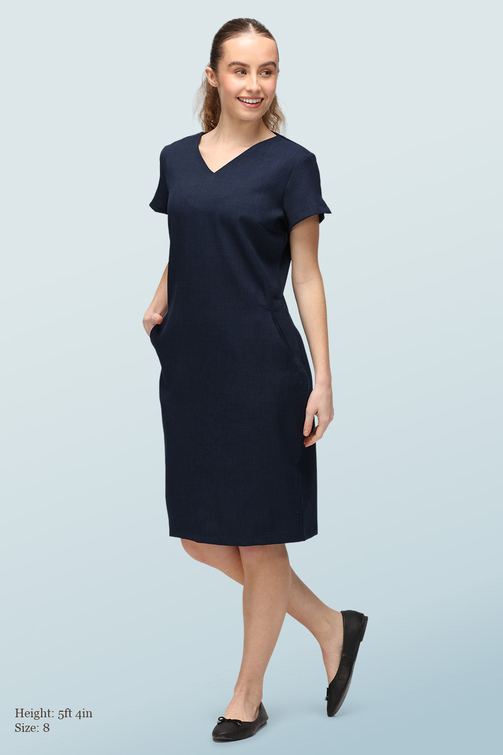 This sleek beauty and wellness dress is designed with two handy side pockets. Features a flattering yet modest v-neckline for professionalism and sophistication. Because you deserve to feel your best, all shift long.