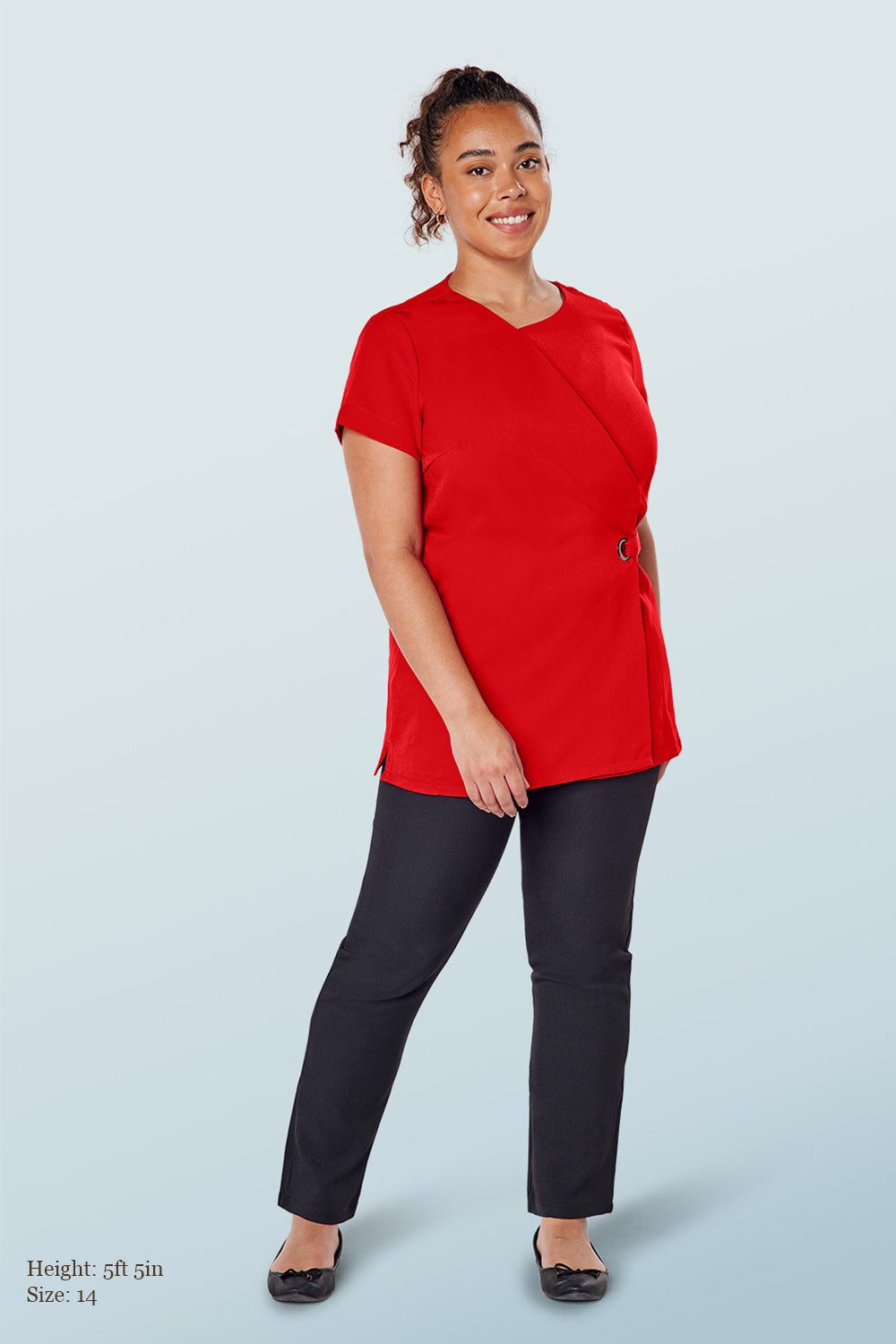 This modern beauty and wellness tunic is designed with an adjustable wrap over and side fastening for a flattering fit that brings you comfort and confidence. Because you deserve to feel your best, day in, day out.