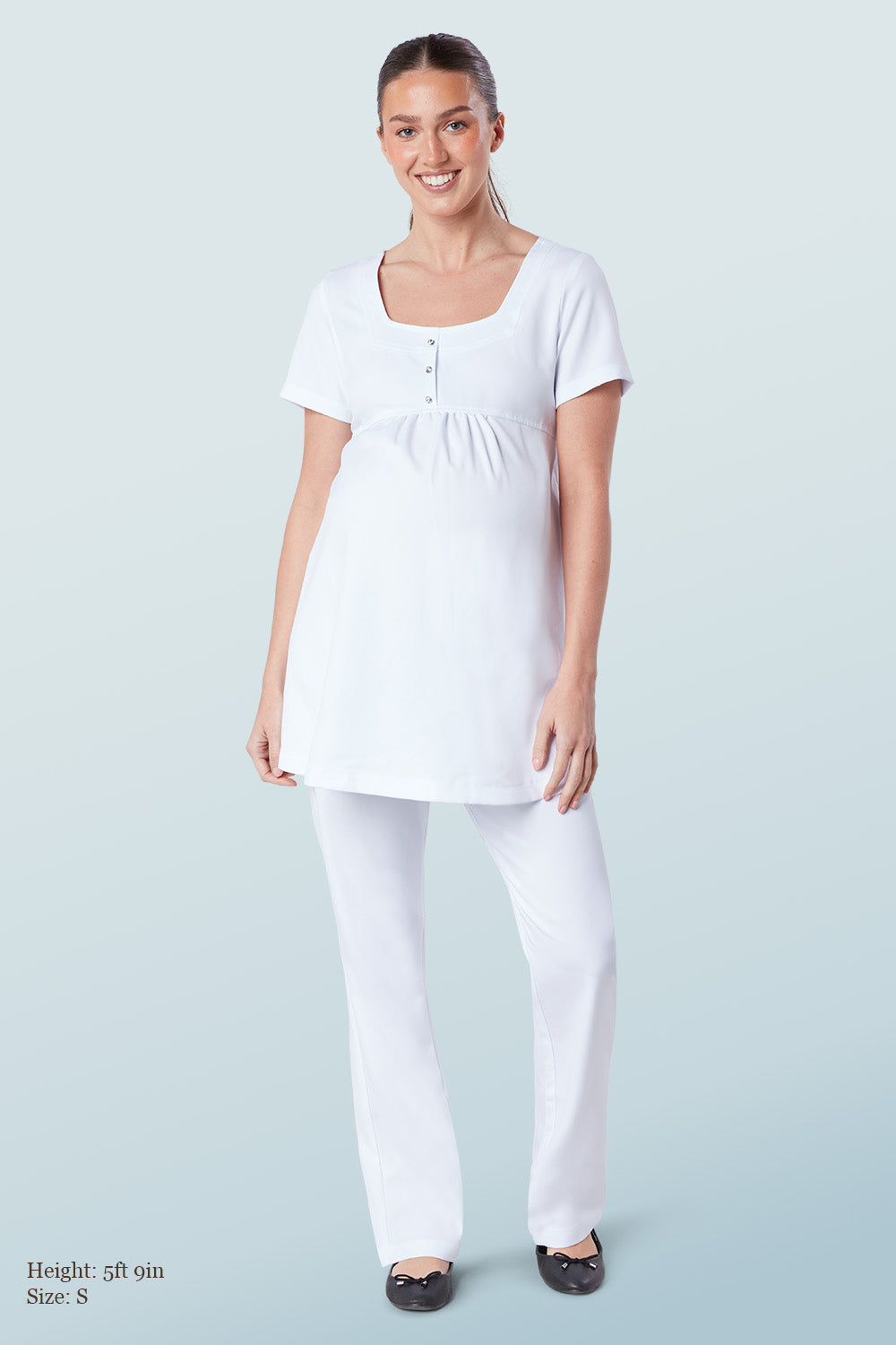 The ultimate maternity trousers that prioritise super easy-care and all day comfort for your growing bump. Featuring water-repellent, anti-shrinkage, crease resistant qualities. Enjoy a tapered leg in Black, or a straight leg in White.