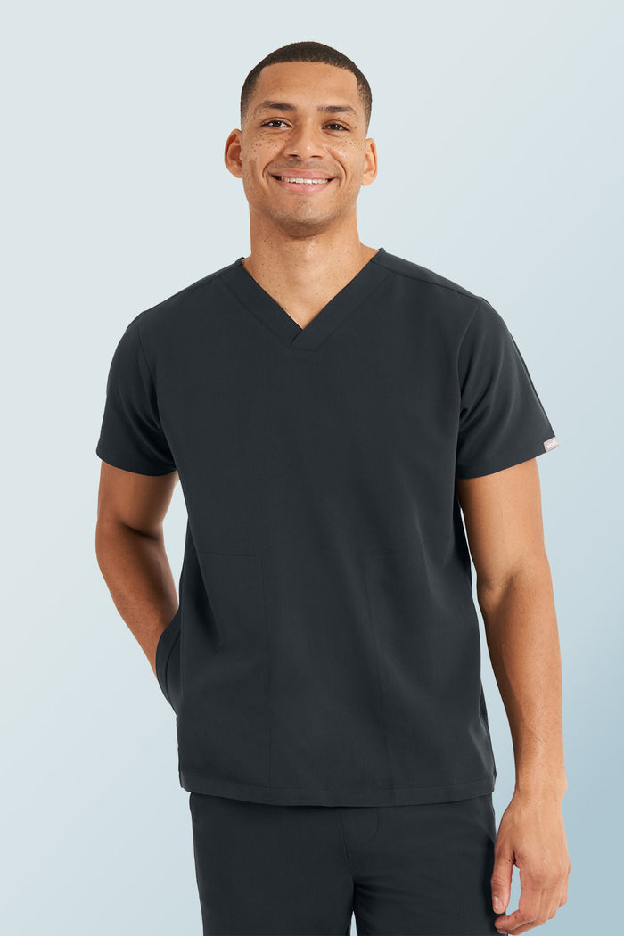 A classic v-neck scrub top, elevated. Designed for optimal comfort and functionality using technical fabric, this scrub top is ready to work as hard as you do, day after day. Featuring two functional welt pockets, this top is ideal for keeping pens and pen torches to hand at all times. 81% Poly, 15% Viscose, 4% Spandex, 100% game-changing.