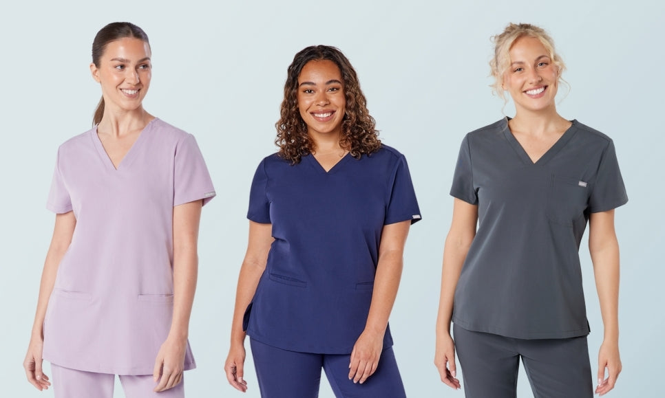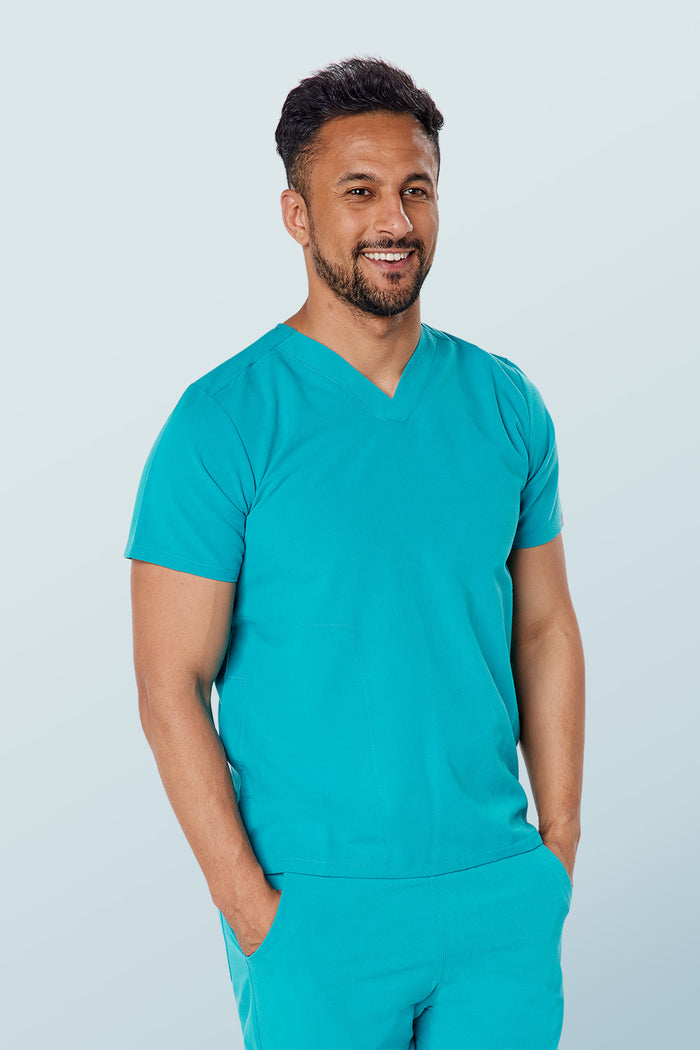 A classic v-neck scrub top, elevated. Designed for optimal comfort and functionality using technical fabric, this scrub top is ready to work as hard as you do, day after day. Featuring two functional welt pockets, this top is ideal for keeping pens and pen torches to hand at all times. 81% Poly, 15% Viscose, 4% Spandex, 100% game-changing.