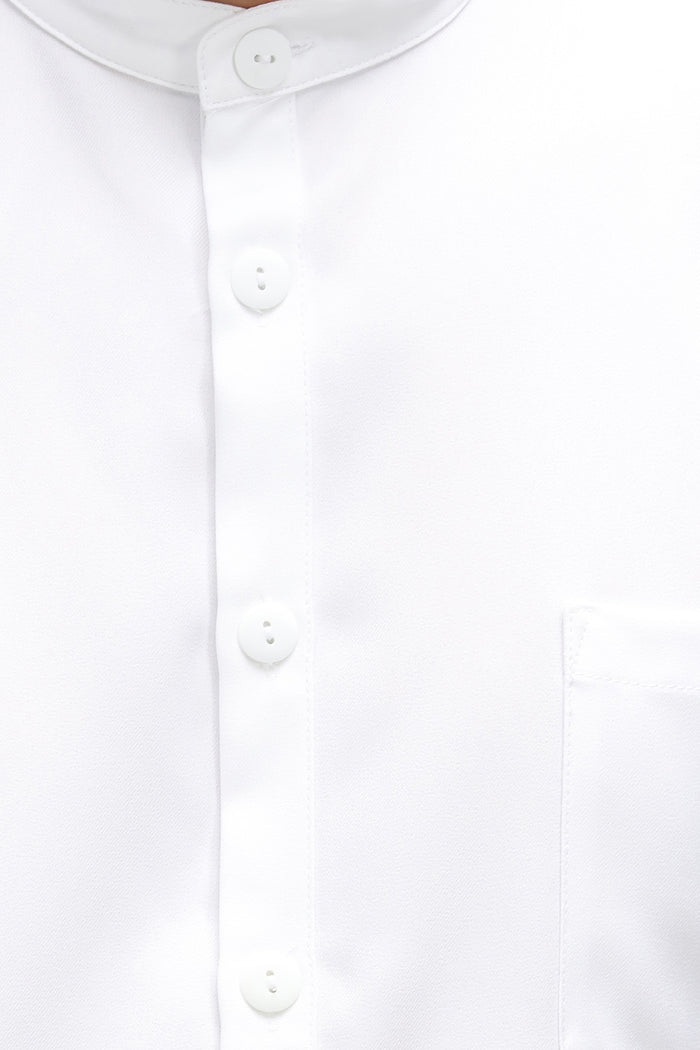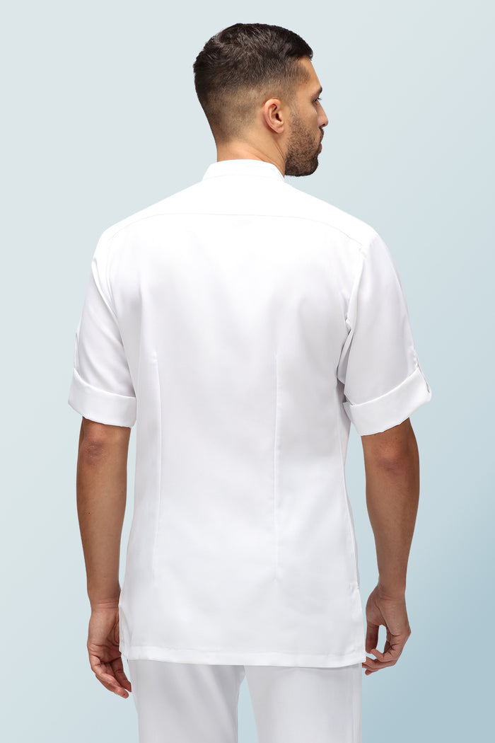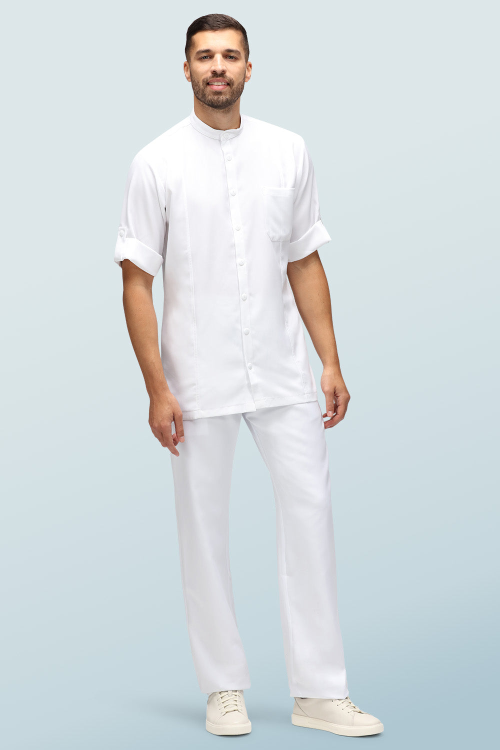 This menswear beauty and wellness tunic is designed with a grandad collar for style and professionalism. Because you deserve to feel your best during every shift.